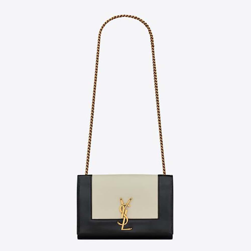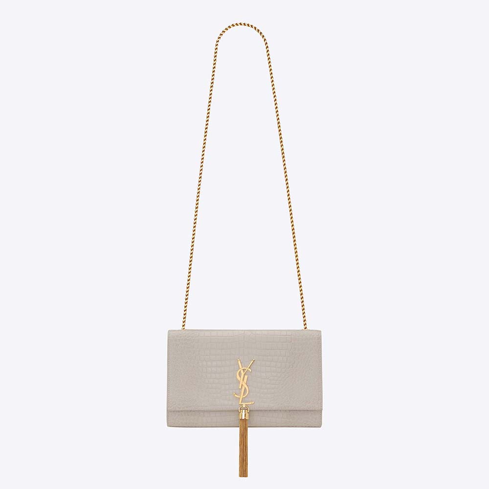 Simple lines, gold YSL logo, and a leather tassel—that’s the Kate. This evening bag is slim and sophisticated, perfect for cocktail parties, weddings, and nights when you want to travel light but look glam.